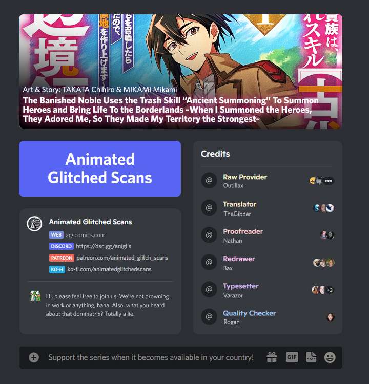 - The Banished Noble Uses the Trash Skill "Ancient Summoning" to Summon Heroes and Bring Life to the Borderlands ~When I Summoned the Heroes, They Adored Me, so They Made My Territory the Strongest~ - Chapter 1